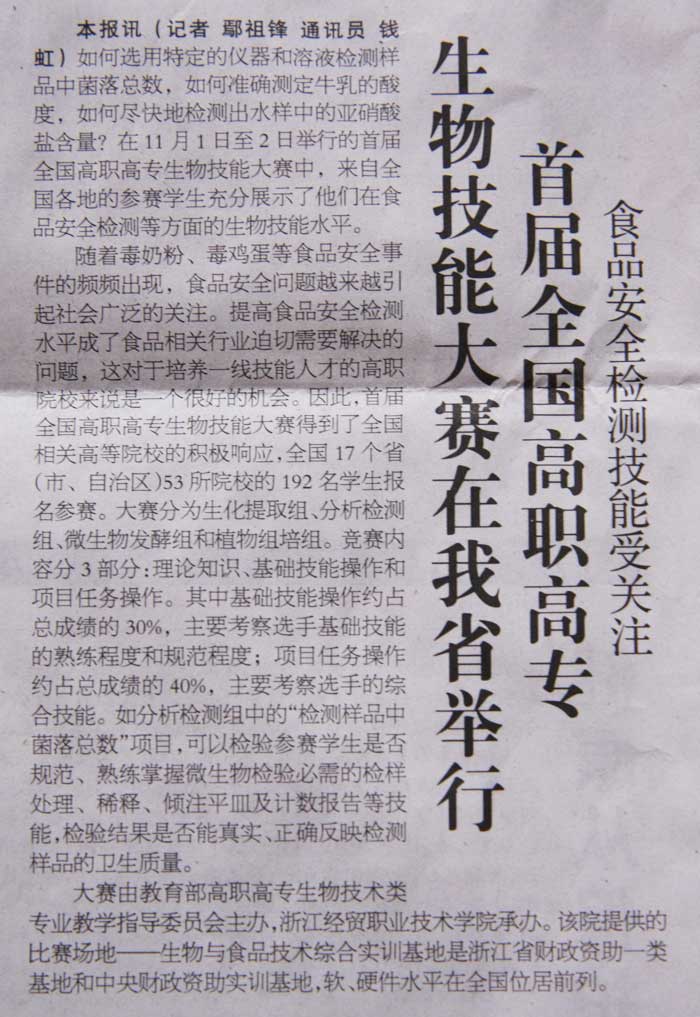 首届全国高职高专生物技能大赛在我省举行食品安全检测技能受关注