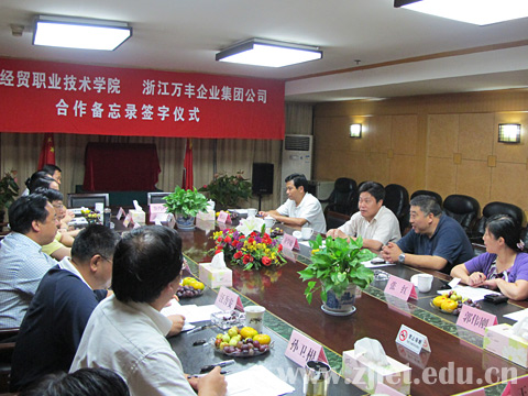 浙江万丰集团是全省供销社系统第一家省批企业集团,创立于1993年7月,是一家集医药、石油、农资、再生资源、烟花爆竹、农副产品、日用消费品等商贸和工业、房地产开发、酒店、市场物流、资产经营于一体的多元化企业集团。为了充分发挥萧山供销社系统资源优势和学院在专业建设、科研开发等方面的人才优势,双方经前期充分沟通,决定开展农产品产学研销等多领域的深层次合作,成立院企合作委员会,共同搞活农产品生产和流通,在学院设立农产品展销厅和消费合作社,为提升学院的办学水平和丰富供销系统经营形式创造条件。