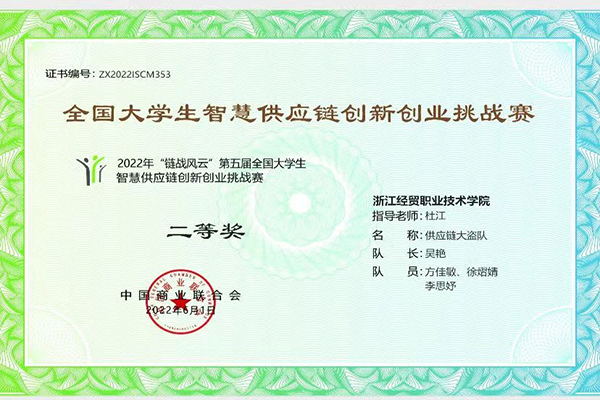 2022年6月16日,由中国商业联合会主办的2022年第五届“链战风云”全国大学生智慧供应链挑战赛落下帷幕,我校工商管理学院现代物流管理专业再创佳绩。两支团队在比赛中分获一等奖、二等奖各一项,并斩获团体总决赛金奖。指导教师杜江获得“优秀指导教师”称号。