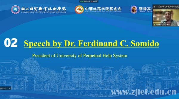 12月2日上午,学校与菲律宾永恒大学、中菲丝路学院基金会共同举办的中菲经贸丝路学院首期“中文+新媒体运营”培训班开班仪式,以视频会议的形式顺利举行。学校校长陈德泉、副校长蒋丽君,菲律宾永恒大学校长费迪南德、副校长吉纳维芙·雷亚隆,中菲丝路学院基金会会长张红阳出席仪式。