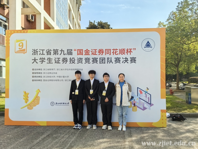 近日,由浙江省大学生科技竞赛委员会主办,浙江财经大学、浙江省大学生证券投资竞赛委员会承办,中国计量大学、国金证券股份有限公司、浙江核新同花顺网络信息股份有限公司协办的浙江省第九届“国金证券同花顺杯”大学生证券投资竞赛团队赛总决赛在中国计量大学落下帷幕,学校财务会计学院财富管理专业组成的参赛队伍取得一等奖1项、二等奖4项、三等奖2项的优异成绩。其中由杨依依老师指导,方嘉辉、陈常成、韩炜组成的团队获大赛一等奖。