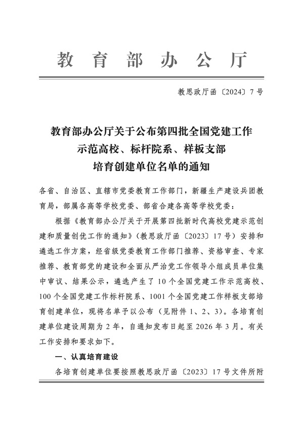 近日,教育部办公厅公布了第四批全国党建工作示范高校、标杆院系、样板支部培育创建单位名单,我校信息技术学院电子商务党支部成功入选,这是我校获批的第二个全国党建工作样板支部。